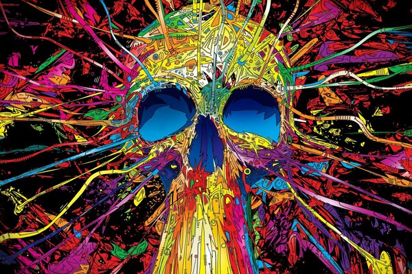 Der Schädel explodiert mit Regenbogenfarben