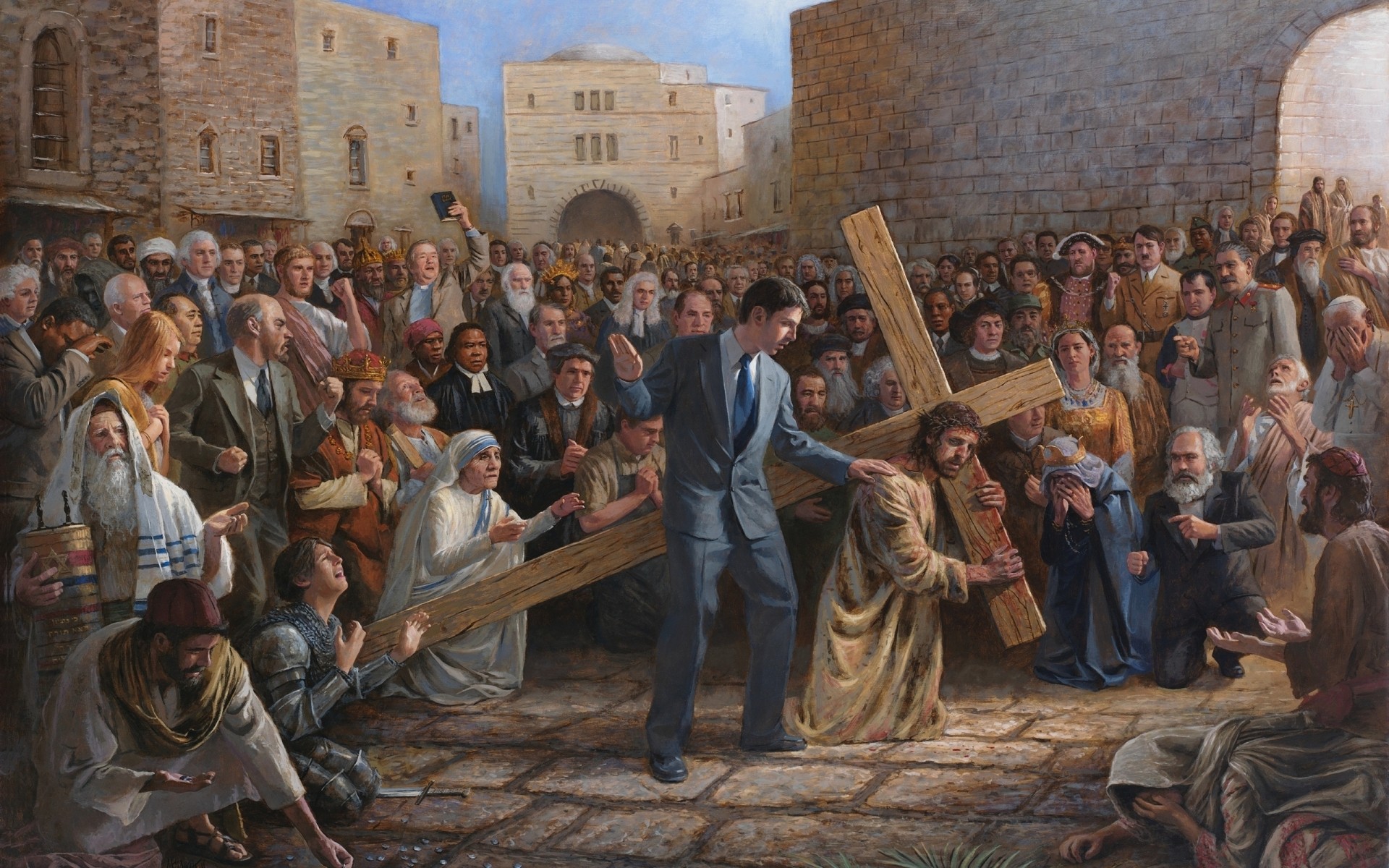 Eine Gruppe religiöser Menschen, ein Mann mit einem Kreuz - desktop-Hintergrund