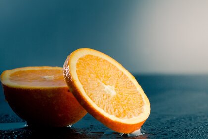 Süße, saftige Orange im Schnitt