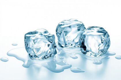 Eisstücke auf dem tisch aufgetaut