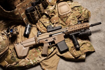 Gewehr. Militäruniform. die Armee