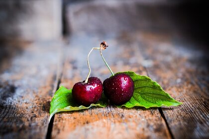Kirsche mit Tropfen Stillleben auf dem Tisch