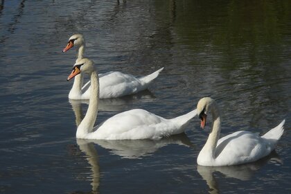 Drei weiße Schwäne schwimmen auf dem See