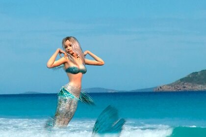 Meerjungfrau im Meer springt aus der Welle