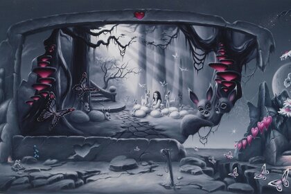 Das mädchen in der roten barett sitzt auf der treppeDas Mädchen in der roten Barett sitzt auf der Treppe