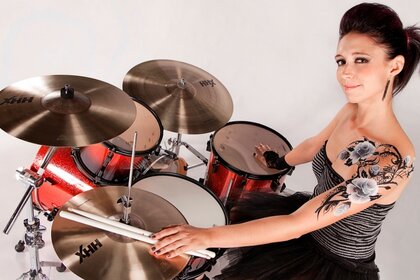 Erwachsene Frau auf Schlaginstrumenten