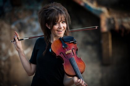Das Mädchen mit der Geige. Musiker. Schönes Lächeln