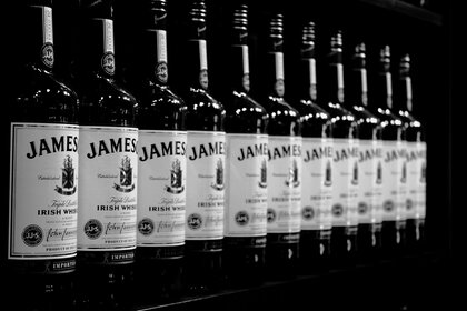 Makro von Whisky-Flaschen auf schwarzem Hintergrund
