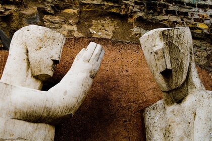 Leere Augenhöhlen, Schädel auf schwarzem Hintergrund