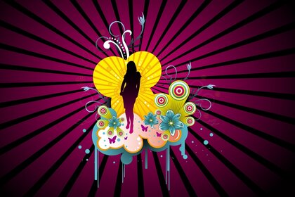 Vektor-Design, weibliche Silhouette mit Schmetterlingen