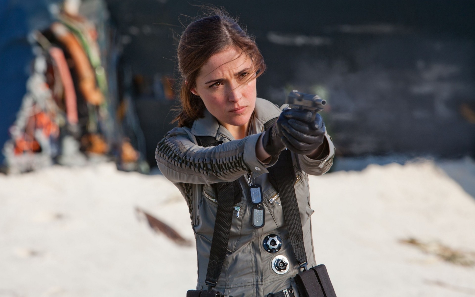Gefährliche Situation, wenn eine Frau eine Waffe anlegt - wallpaper für das Telefon