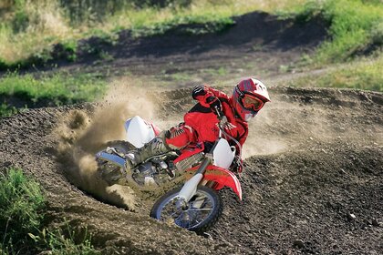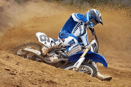 Motorradfahrer kämpft gegen das sandelement