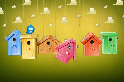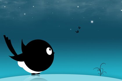 Abstrakter großer kopfvogel schaut auf zwei schmetterlingeAbstrakter großer Kopfvogel schaut auf zwei Schmetterlinge