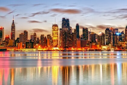 Die Lichter der Wolkenkratzer bei Sonnenuntergang des Tages