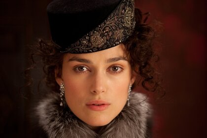 Silberne Ohrringe. Frau mit Hut
