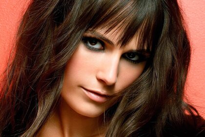 Foto einer Frau auf einem rosa Hintergrund