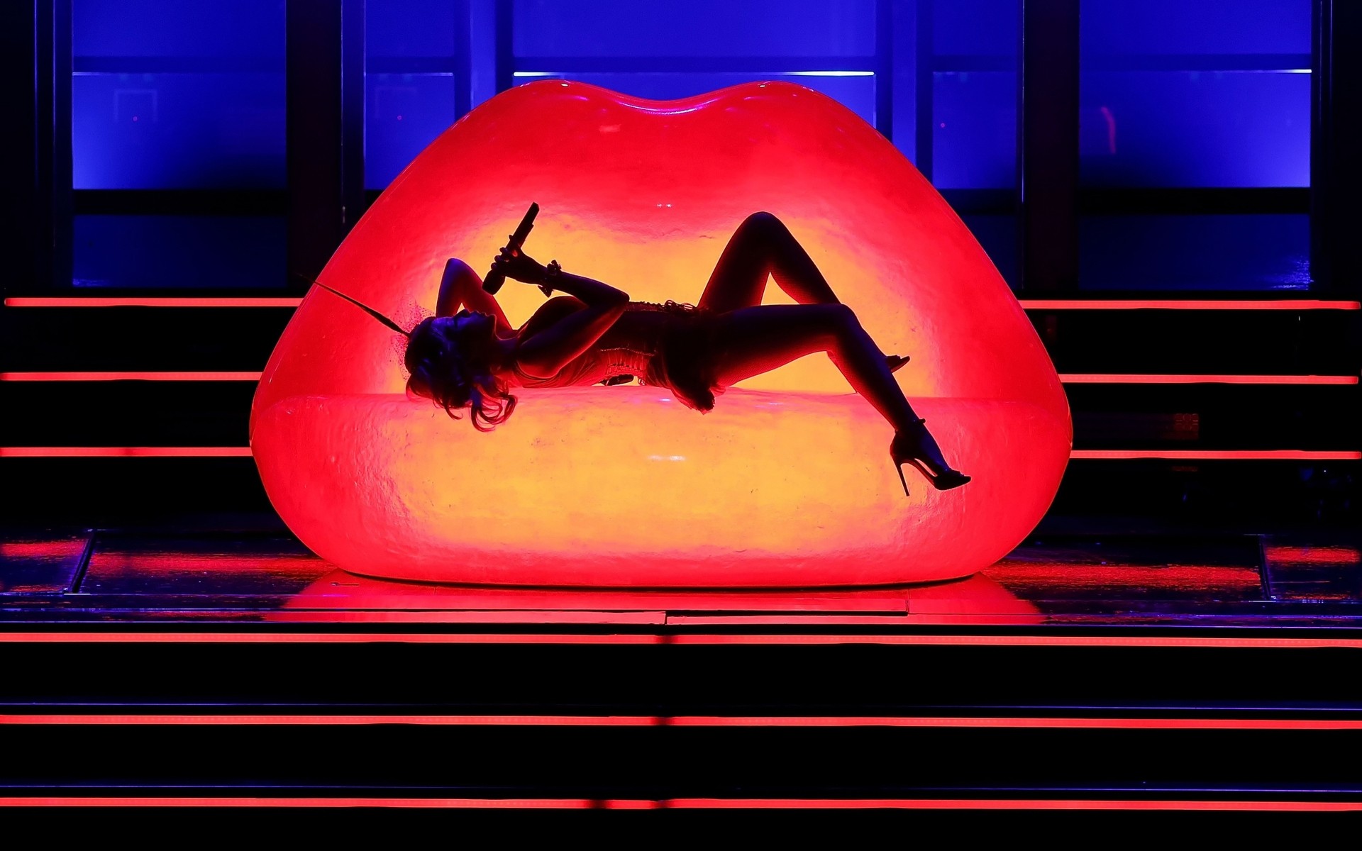 Sexy Sängerin singt ihr Lied auf der Bühne - wallpaper für das Telefon