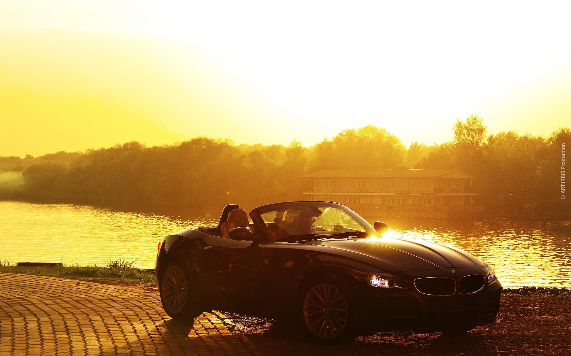 Rennwagen bei schönem Sonnenuntergang - desktop-Hintergrund