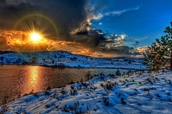 Ein mädchen mit einem rosa stirnband auf dem kopf hält einen becher vor dem hintergrund von flachem schnee in ihren händenEin Mädchen mit einem rosa Stirnband auf dem Kopf hält einen Becher vor dem Hintergrund von flachem Schnee in ihren Händen