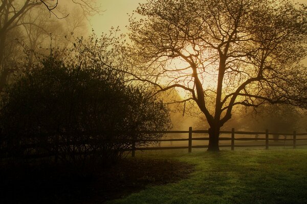 Düstere herbstlandschaft und gelbes licht