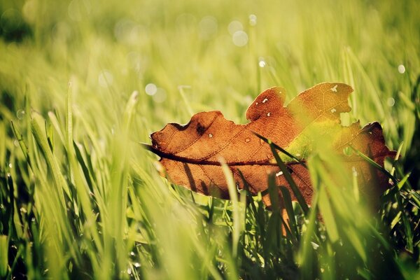 Umgestürztes blatt im sommergras