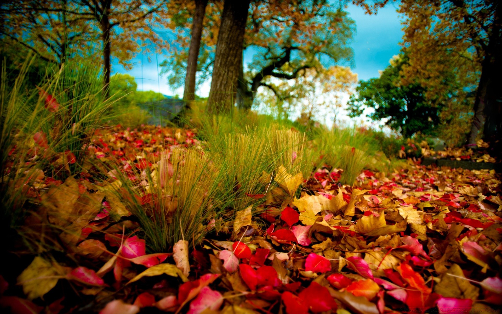 Scharlachrotes Laub im grünen Gras - desktop-Hintergrund
