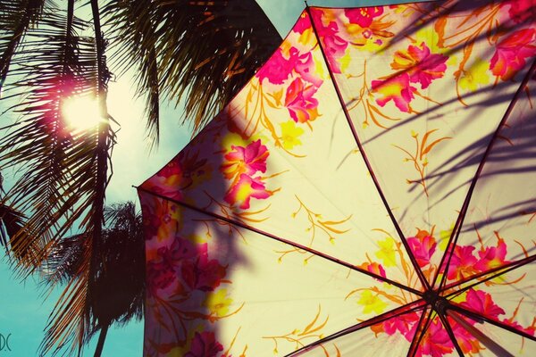Sommer strandurlaub unter einem regenschirm
