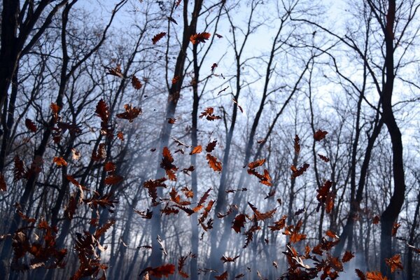Herbstlaub fällt im wald