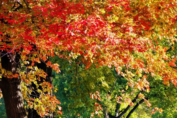 Herbstbaum in roten blättern