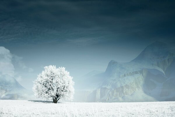 Kalter winter mit schnee bedeckter baum