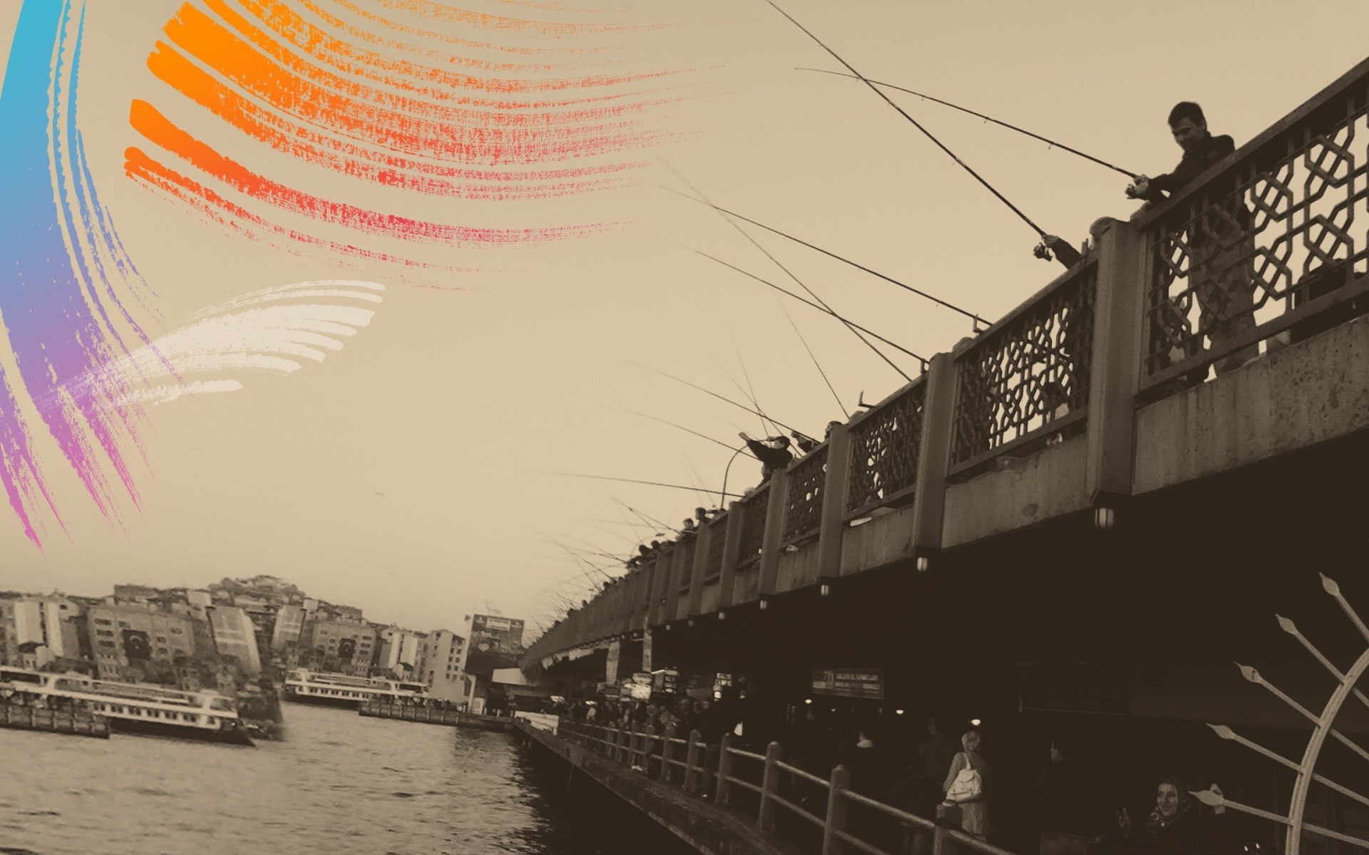 Viele Fischer haben Angelruten geworfen - desktop-Hintergrund