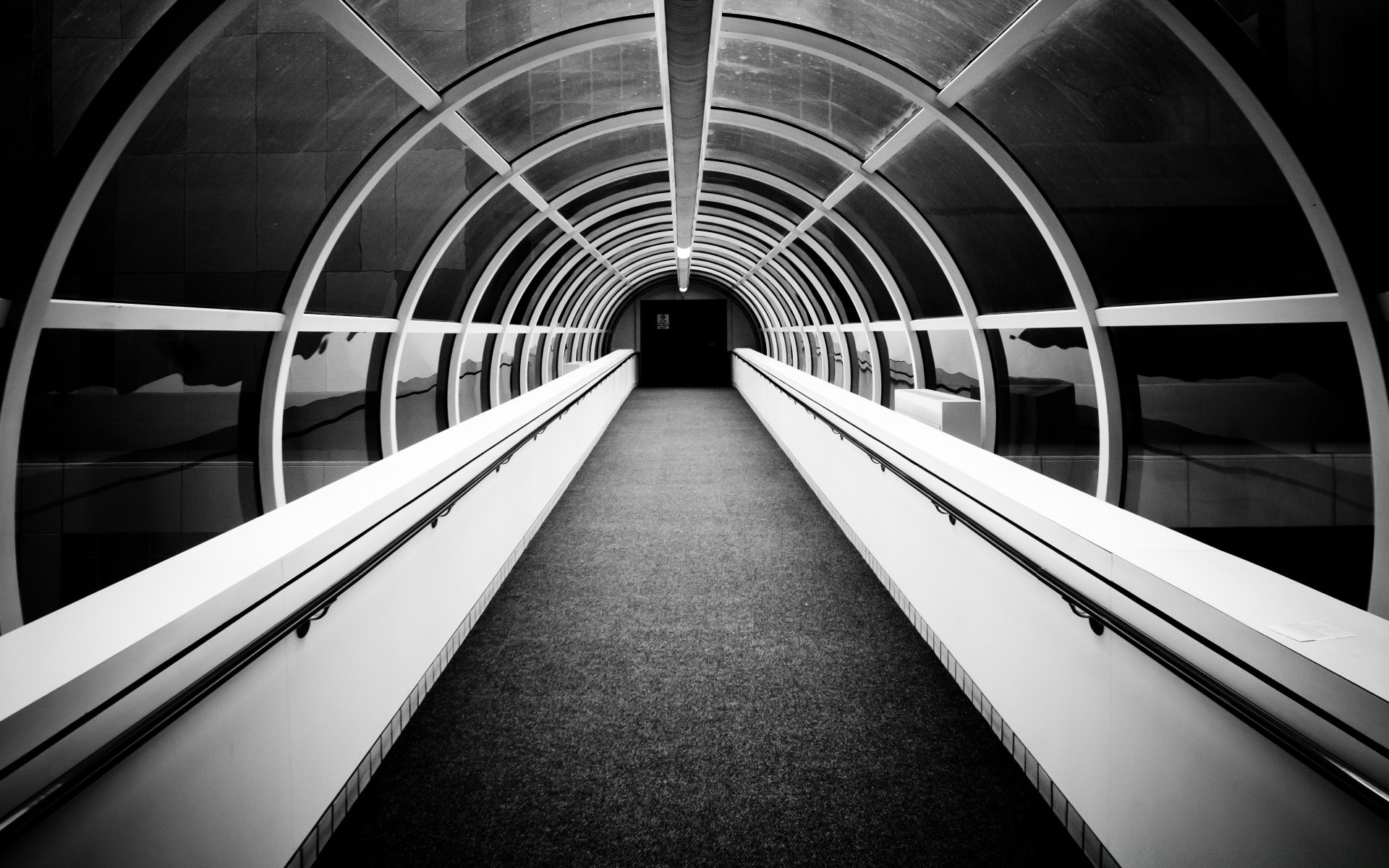 Monochromes Bild des Flughafentunnels - wallpaper für das Telefon