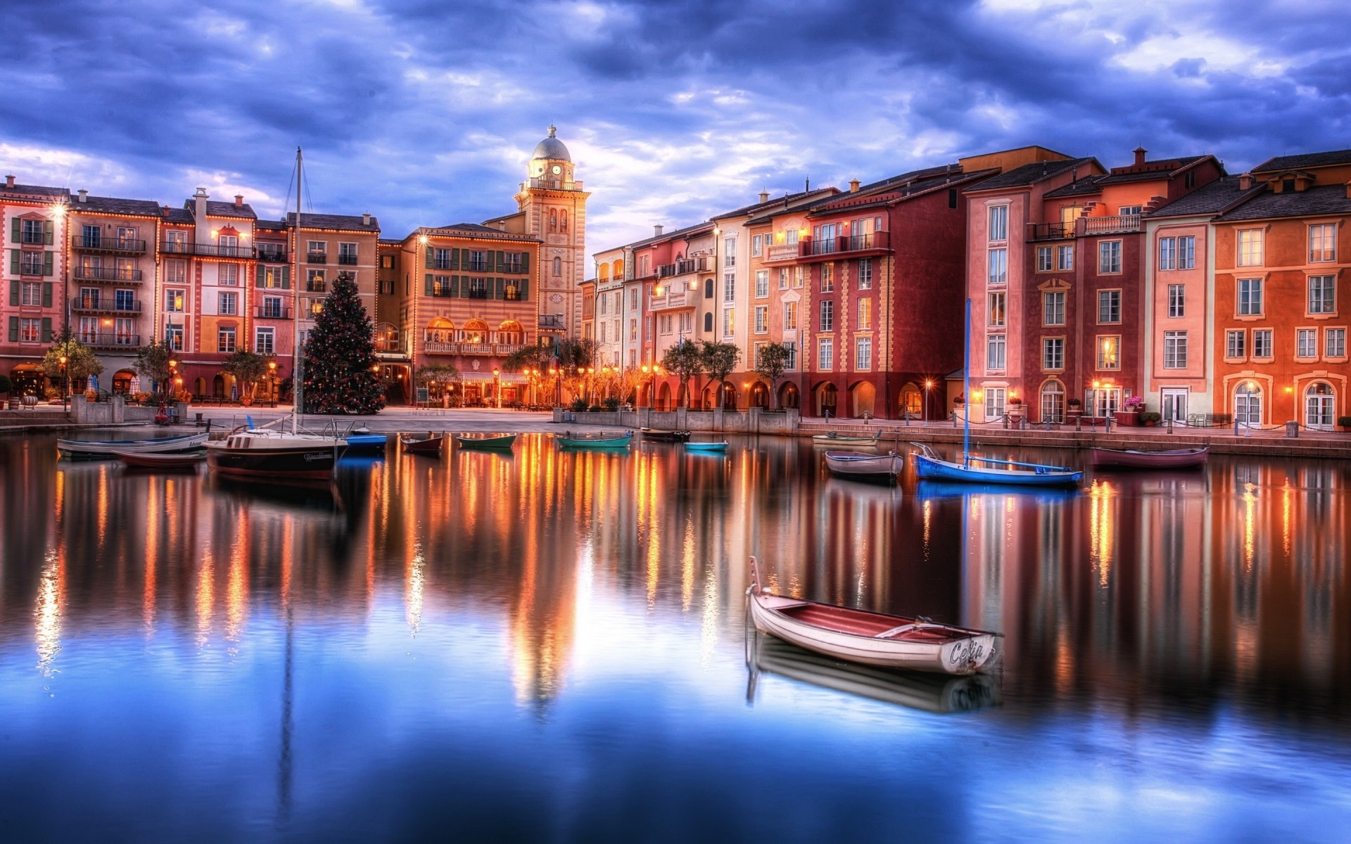 usa wasser architektur reisen stadt haus fluss kanal reflexion dämmerung himmel im freien hintergrundbeleuchtung abend stadt haus tourismus spektakel orlando florida usa boot licht