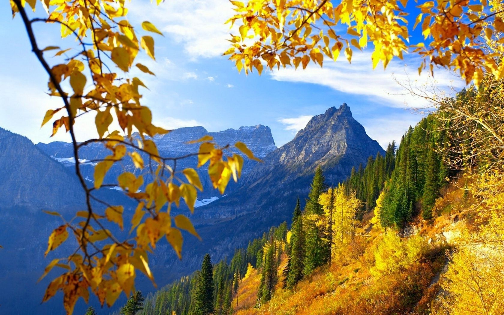 Herbstlaub auf dem Hintergrund der Berge - desktop-Hintergrund