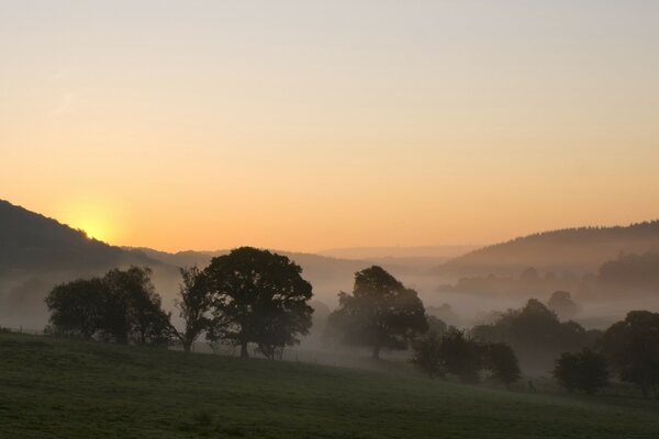 Drohender nebel und sonnenuntergang