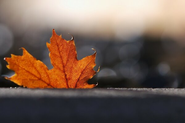 Ahornblatt auf verschwommenem hintergrund