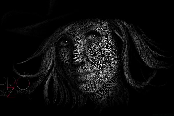 Schwarzweißes foto des ungewöhnlichen gesichts eines mädchens