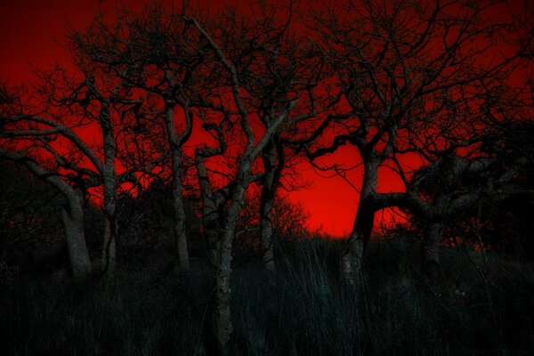 Blutige dämmerung im schattenwald