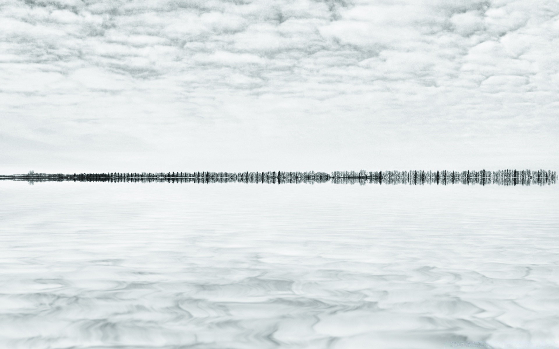 Das mädchen im weißen hemd liegt auf der seite im wasser. landschaft in blauen farbenDas Mädchen im weißen Hemd liegt auf der Seite im Wasser. Landschaft in blauen Farben