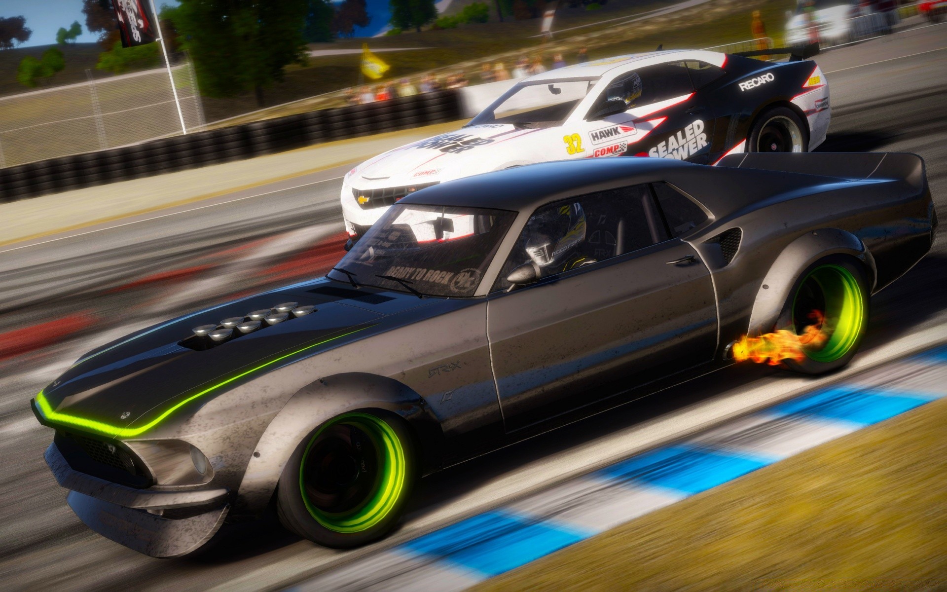 Foto aus dem spiel durst nach geschwindigkeit eines stehenden autos in der nähe von containern