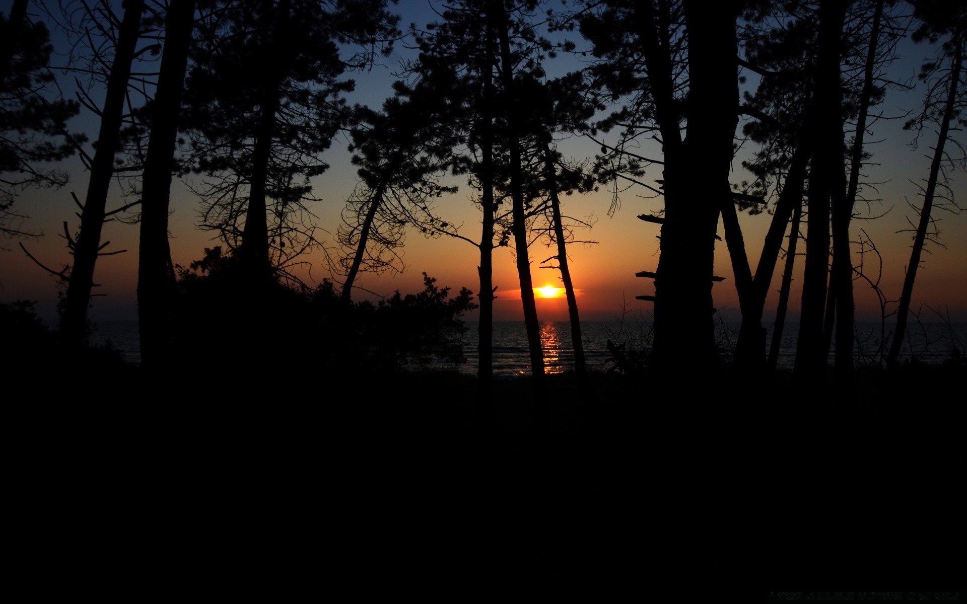 Dämmerung auf dem hintergrund von natur, wasser und bäumen