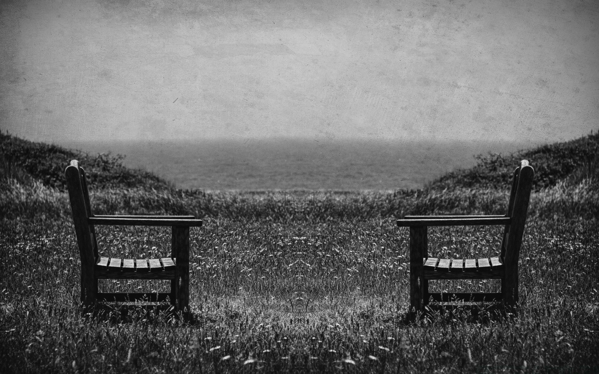 Zwei Stühle in der Mitte des Feldes