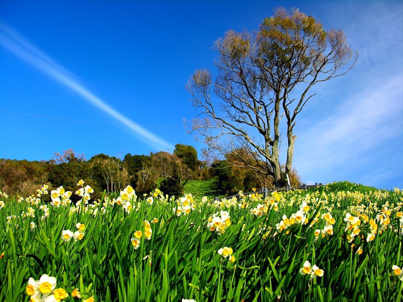 HD-Qualität Blumenfeld auf Himmelshintergrund
