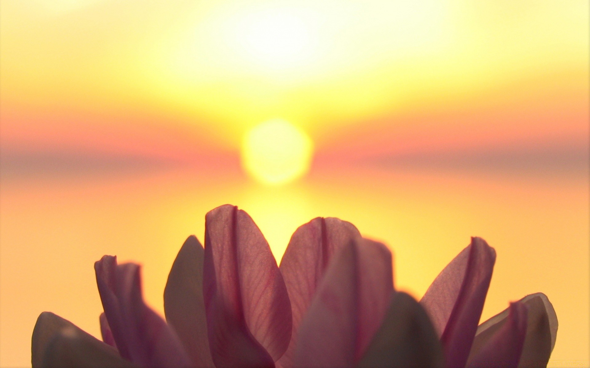 Tulpen auf dem Hintergrund von Bergen und Sonne