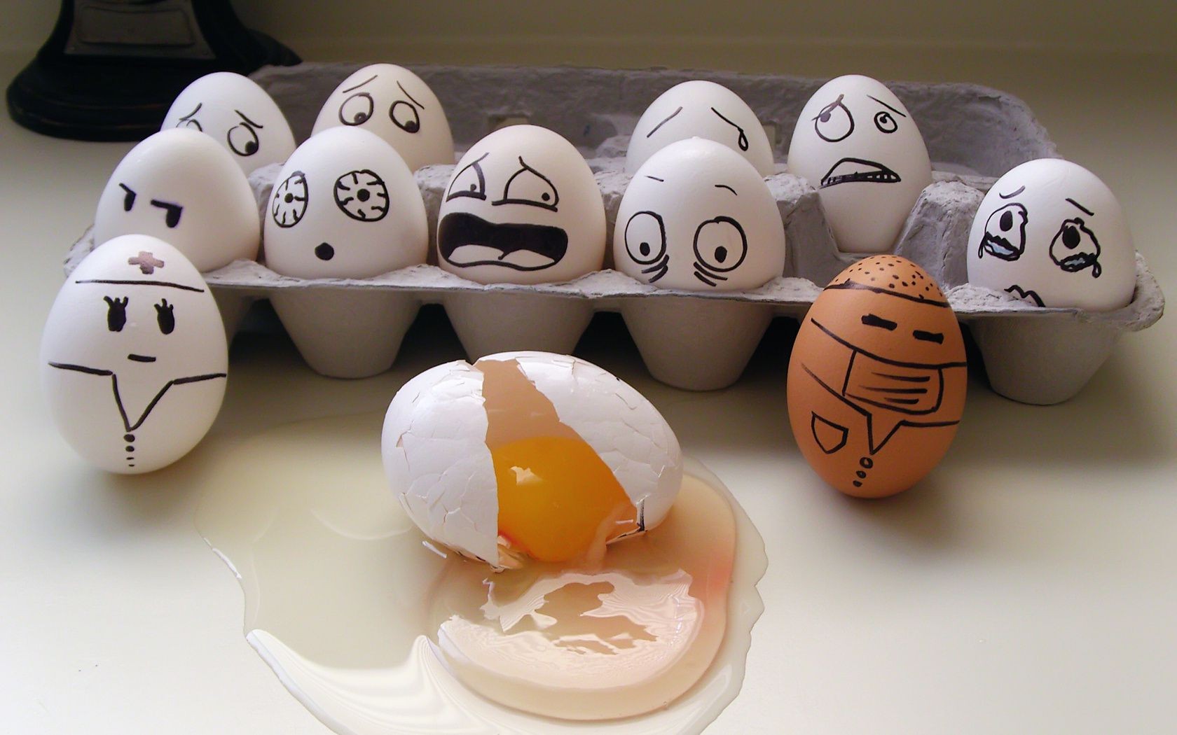 Tod in der Nähe der Box. Eier sind entsetzt