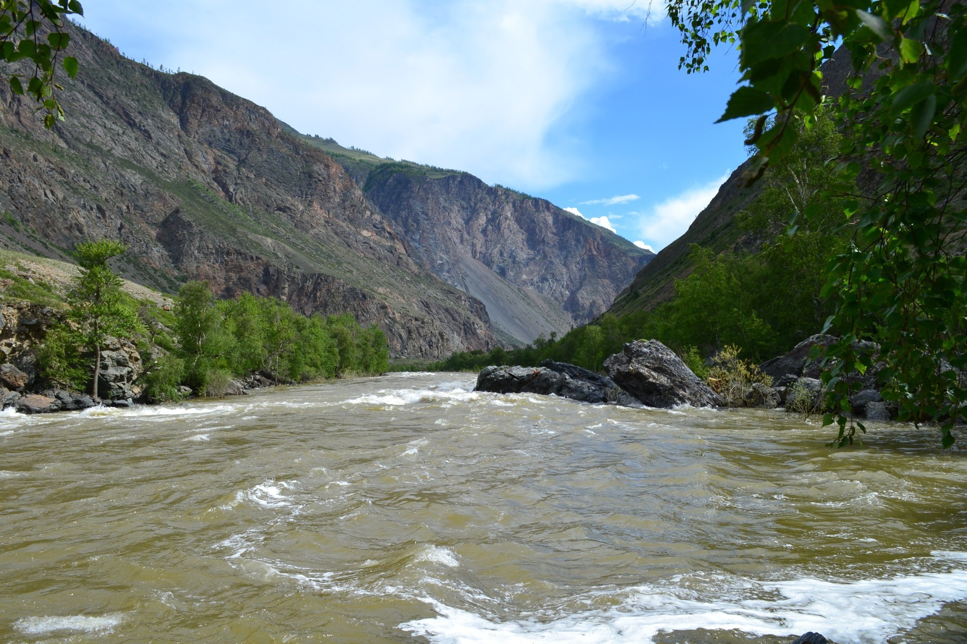 Berge, die den fluss in der höhe verschlungen habenBerge, die den Fluss in der Höhe verschlungen haben