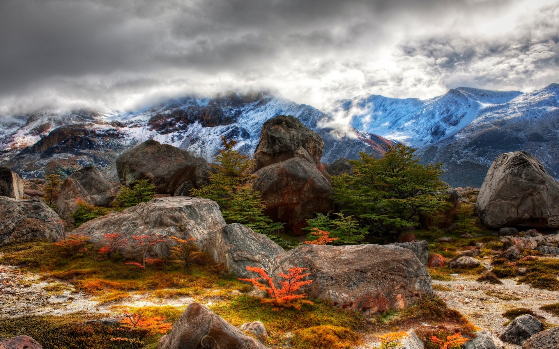 Atemberaubende aussicht auf die schneebedeckten bergeAtemberaubende Aussicht auf die schneebedeckten Berge