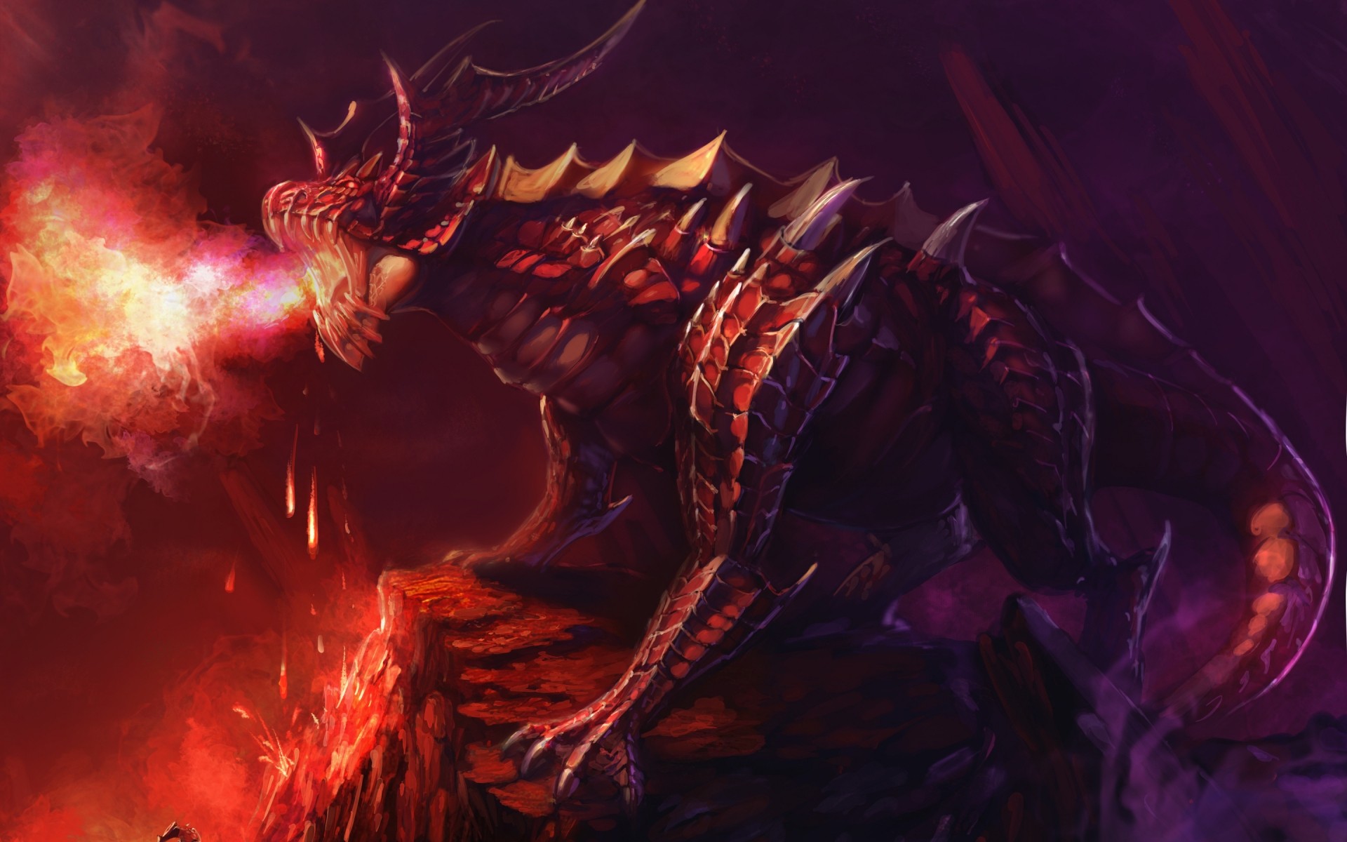 Ein Charakter aus dem Spiel, ein knurrender Wolf in Flammen