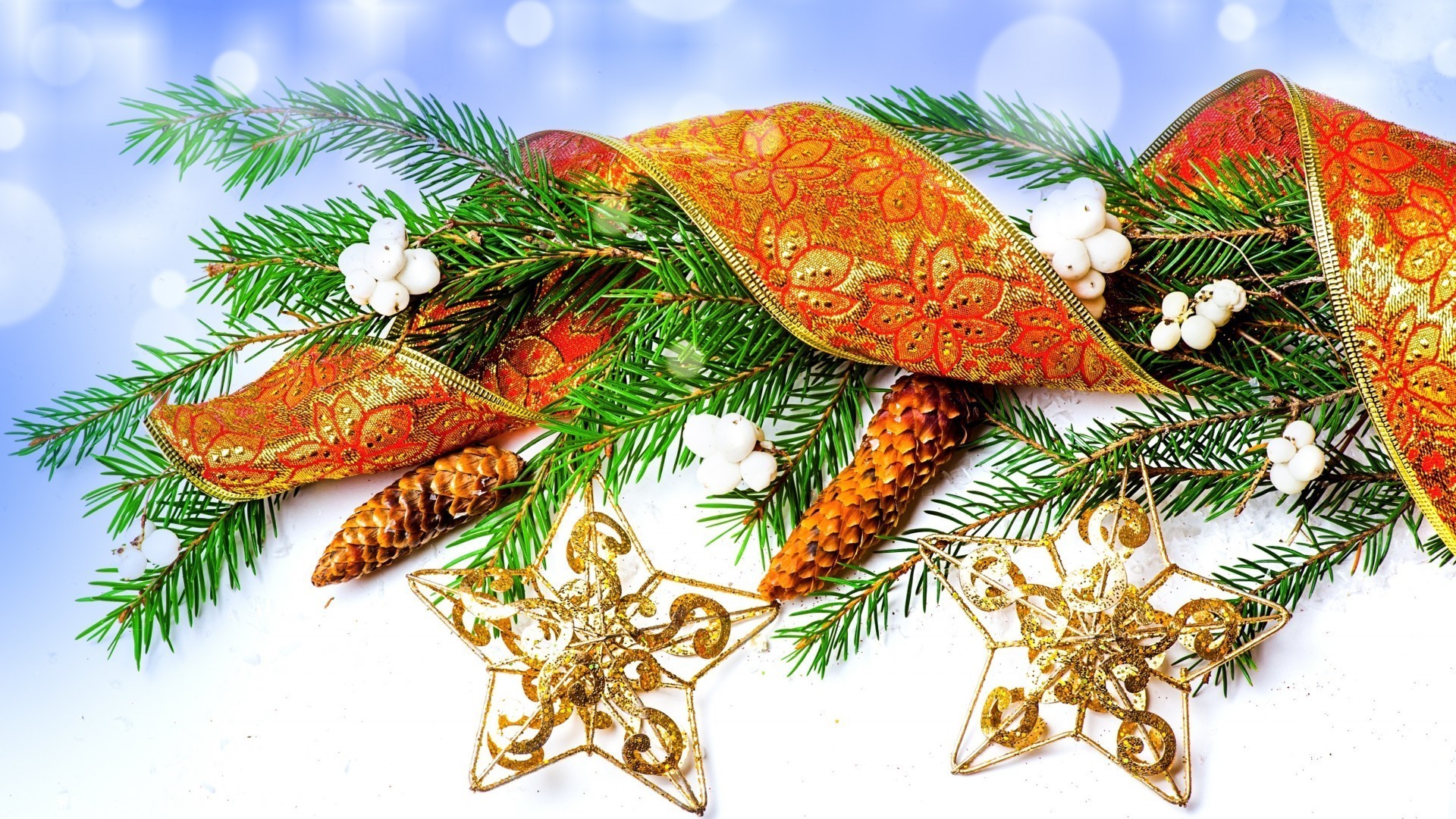 Eine Vielzahl von Dekorationen für den festlichen Weihnachtsbaum