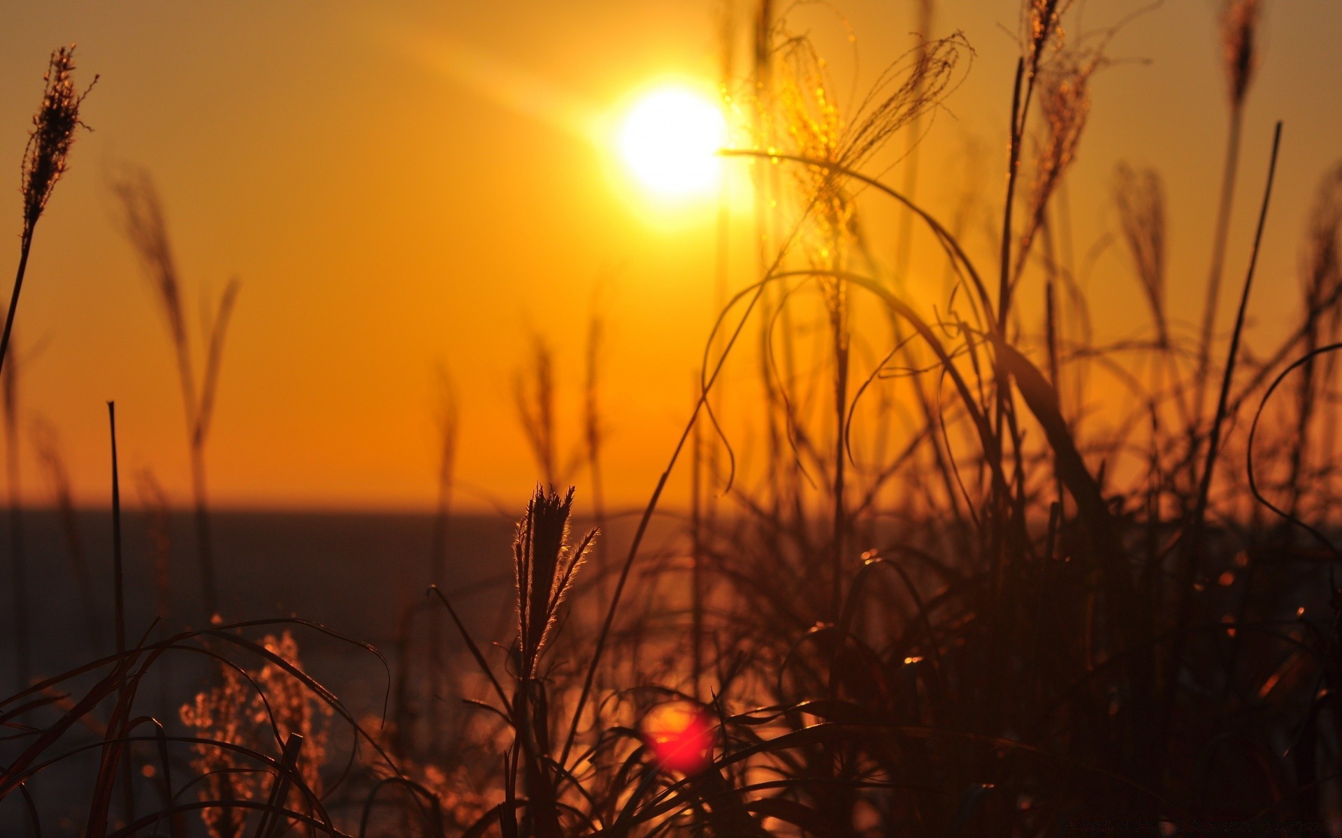 Schöner Sonnenuntergang durch Pflanzen